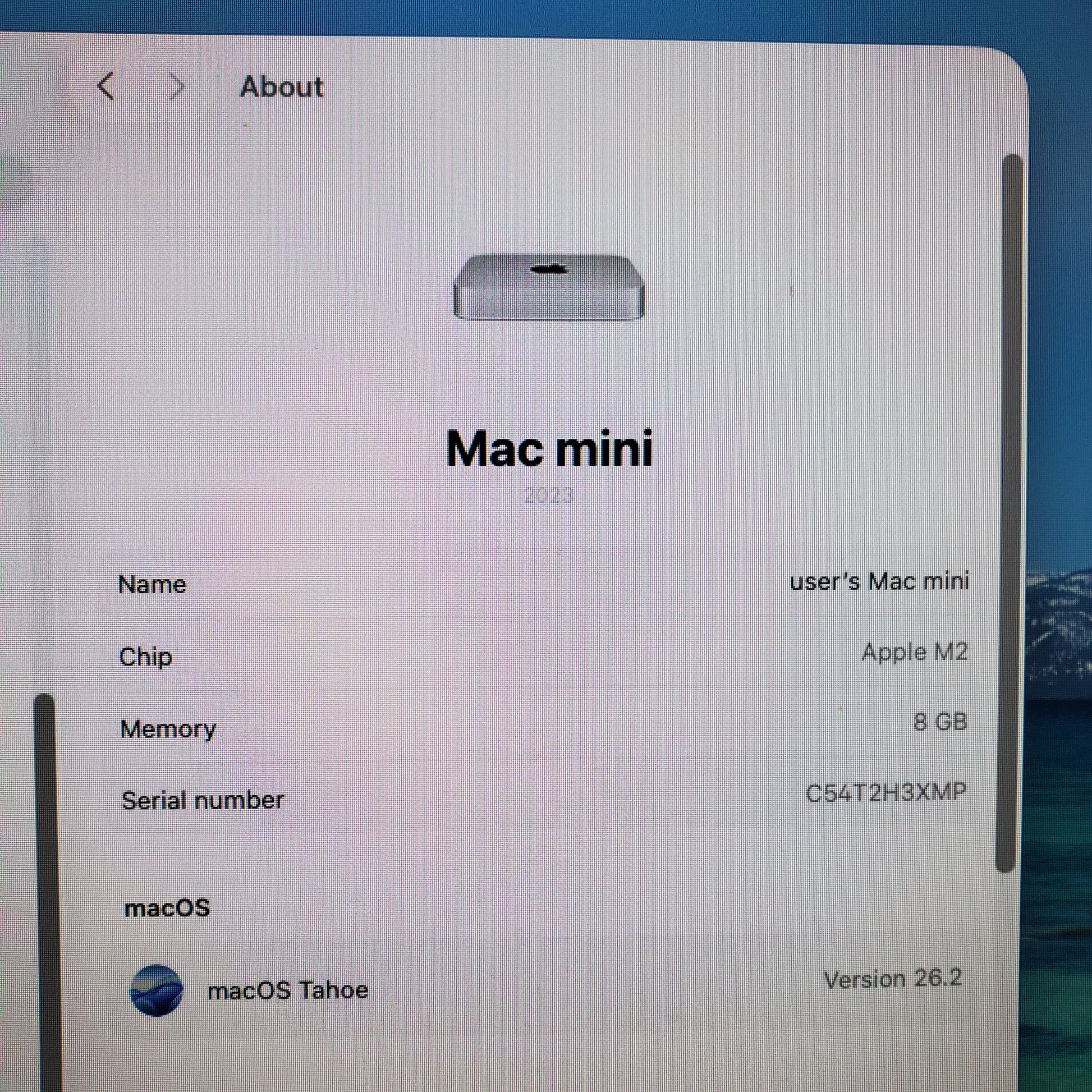 | Operating System | Tahoe 26.2 |