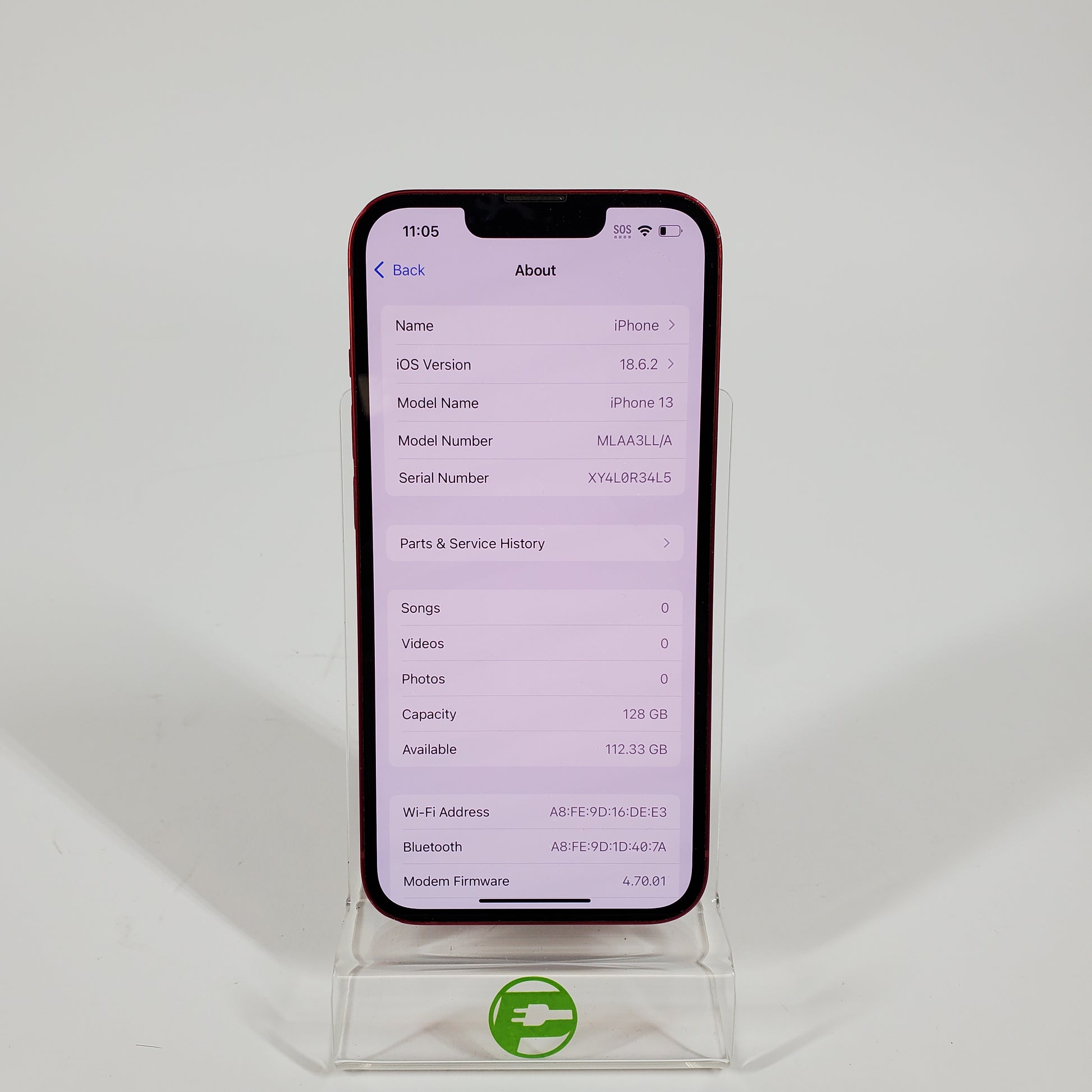 The power button, vibrate/ringer switch and volume buttons are all fully functional with no issues. Both the front and rear cameras are fully functional with no issues. The LCD/OLED has no issues or damage. The Digitizer (Touch Screen) responds to touch and is fully functional. The WiFi abilities are available and fully functional. The Bluetooth abilities are available and fully functional. All speakers function properly and sound great. The battery needs to be serviced. This means that the battery needs to be replaced. The phone charges and powers on in order for me to test all functions, but the battery will die sooner rather than later. The charge port is clean and fully functional.