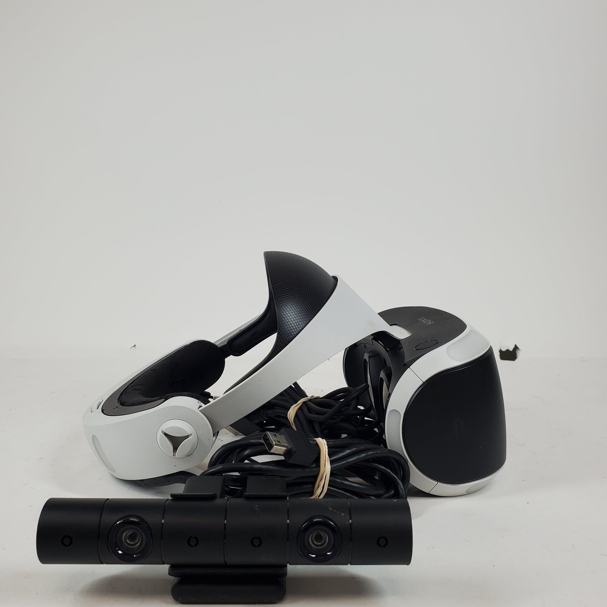 The left and right screens are in good condition, there are some light, but noticeable, marks from use, but nothing too significant. The casing is in poor condition due to heavy scuffs, dents, scratches and wear. This wear is very noticeable on the casing. All of the ports are in good condition and clean. The headband is in good condition with some light to moderate wear. There may be some small stains and/or noticeable scuffs and wear from use. The cables that connect the headset to another device are in poor condition with heavy use and may include some damage to the sheath. Please view our close up photos, as these are taken of the actual item being offered for sale.